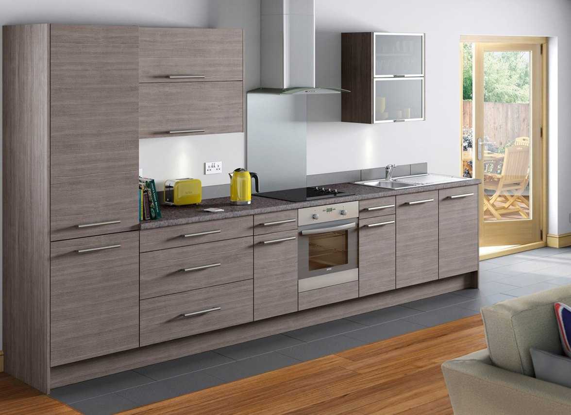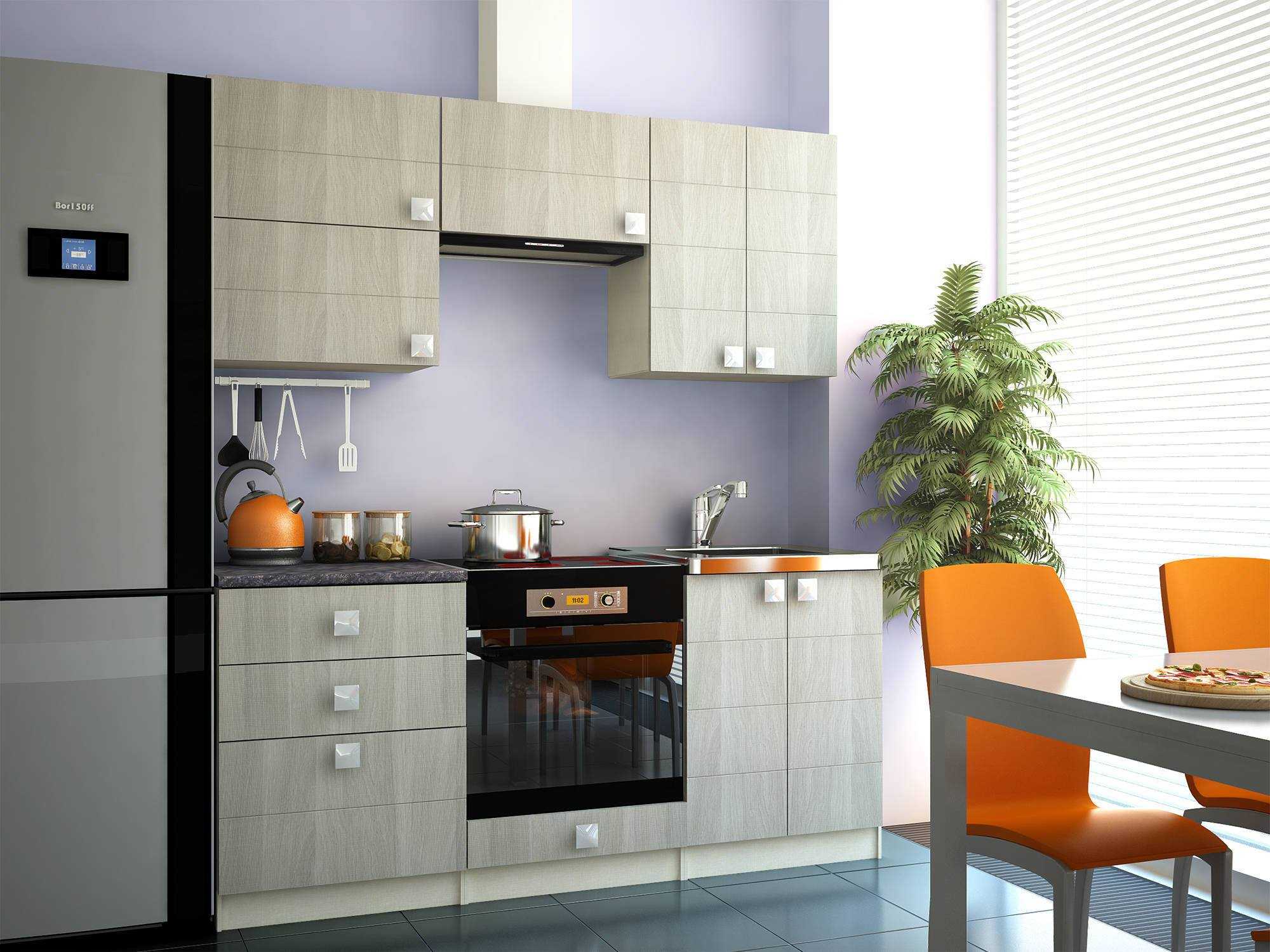 Корпус электрической или газовой плиту неплохо будет встроить вовнутрь нижнего модуля или шкафа-колонкой. При необходимости можно закрыть её распашным фасадом. Для небольших кухонь целесообразно использовать компактные холодильники, которые также могут быть встроены в гарнитур.