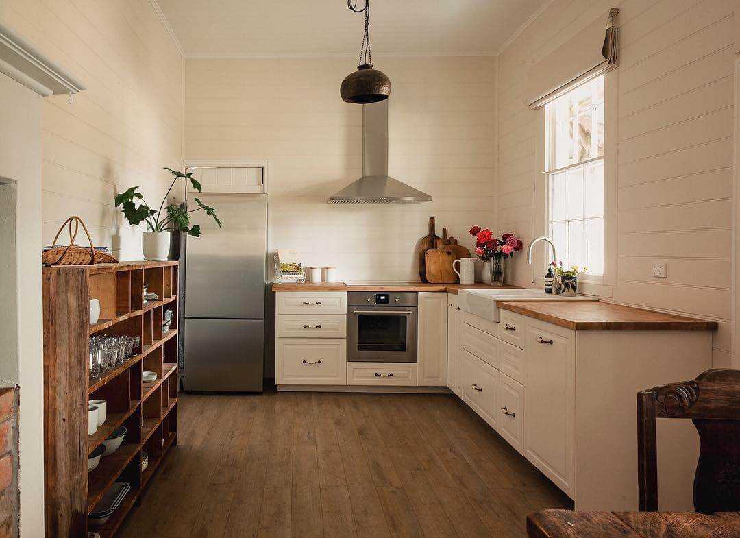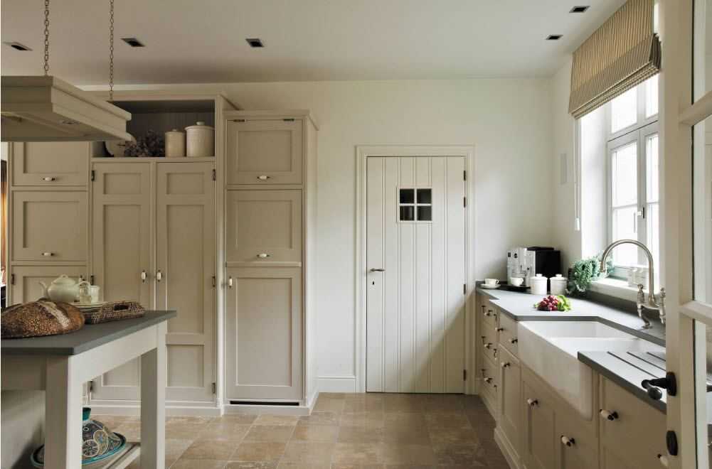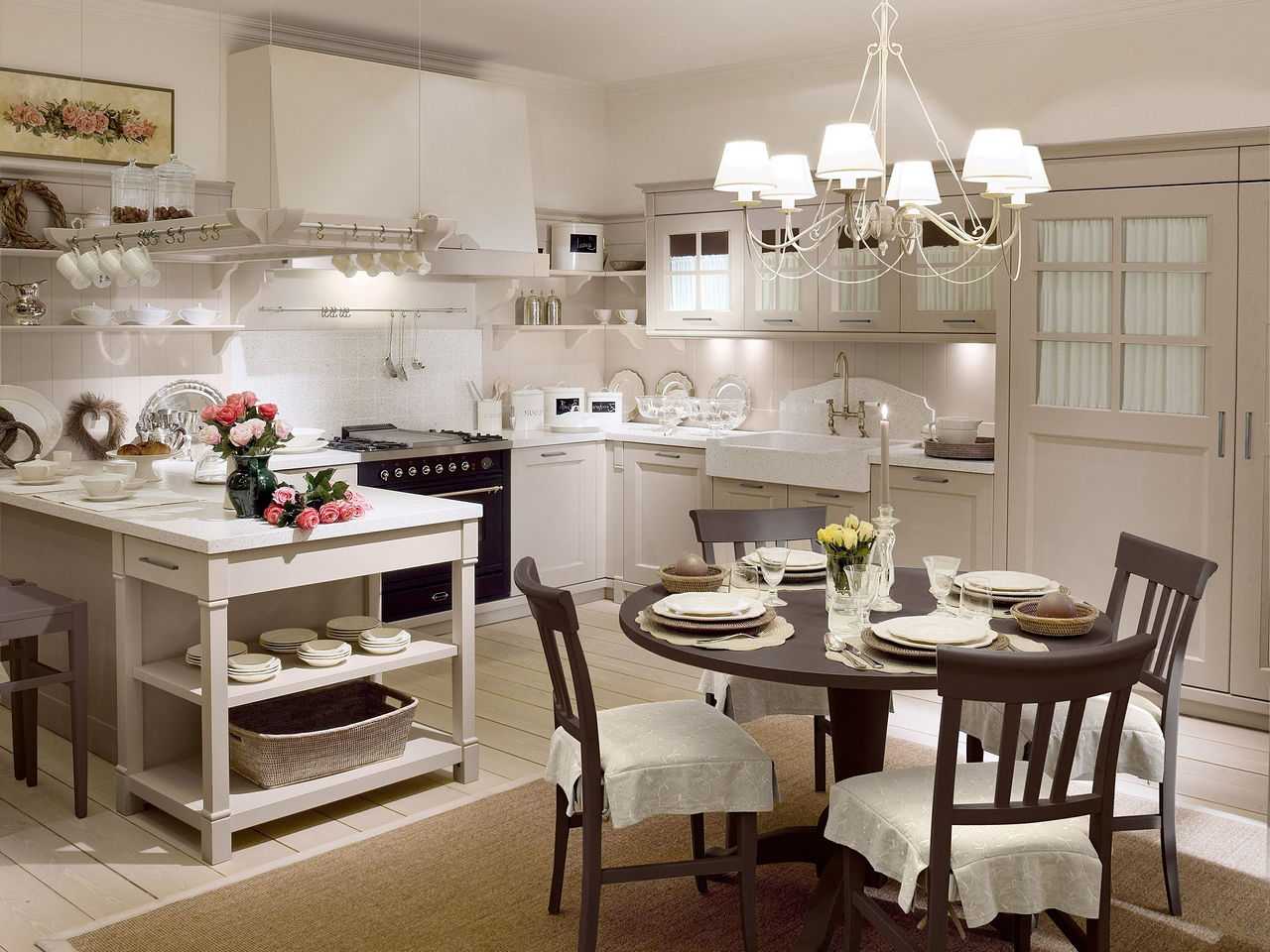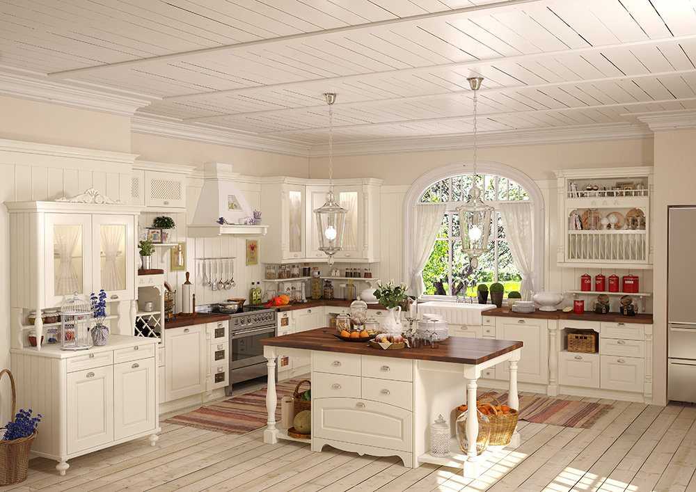 Этот стиль одинаково хорошо подходит для оформления как небольших кухонь в квартирах, так и просторных помещений загородных домов. Поскольку он предполагает использование светлых тонов, с его помощью можно визуально расширить комнату.