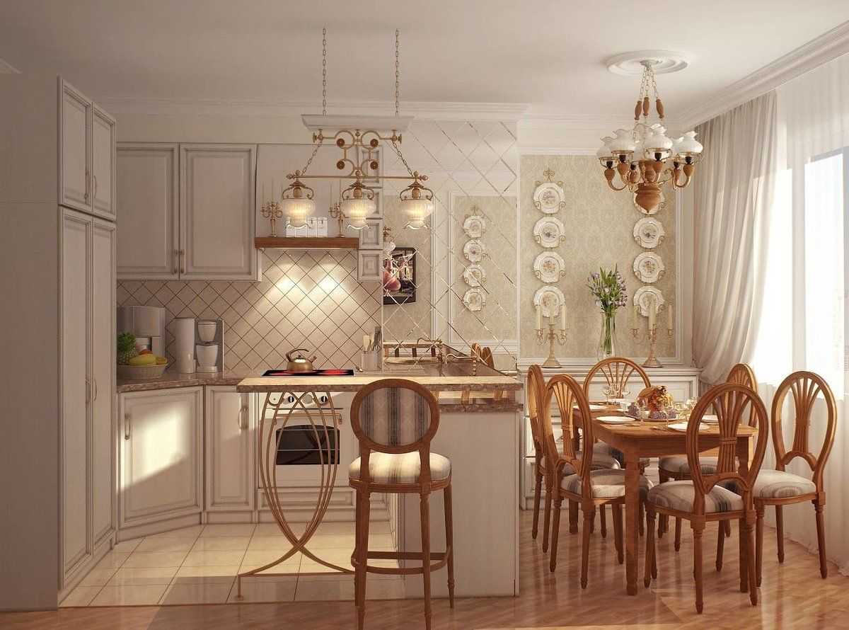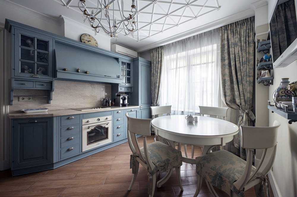 Французское кантри хорошо смотрится в просторных помещениях. Поэтому часто в маленьких квартирах, где нет свободных метров, кухню увеличивают, совмещая ее с гостиной. Таким образом здесь можно разместить даже барную стойку.