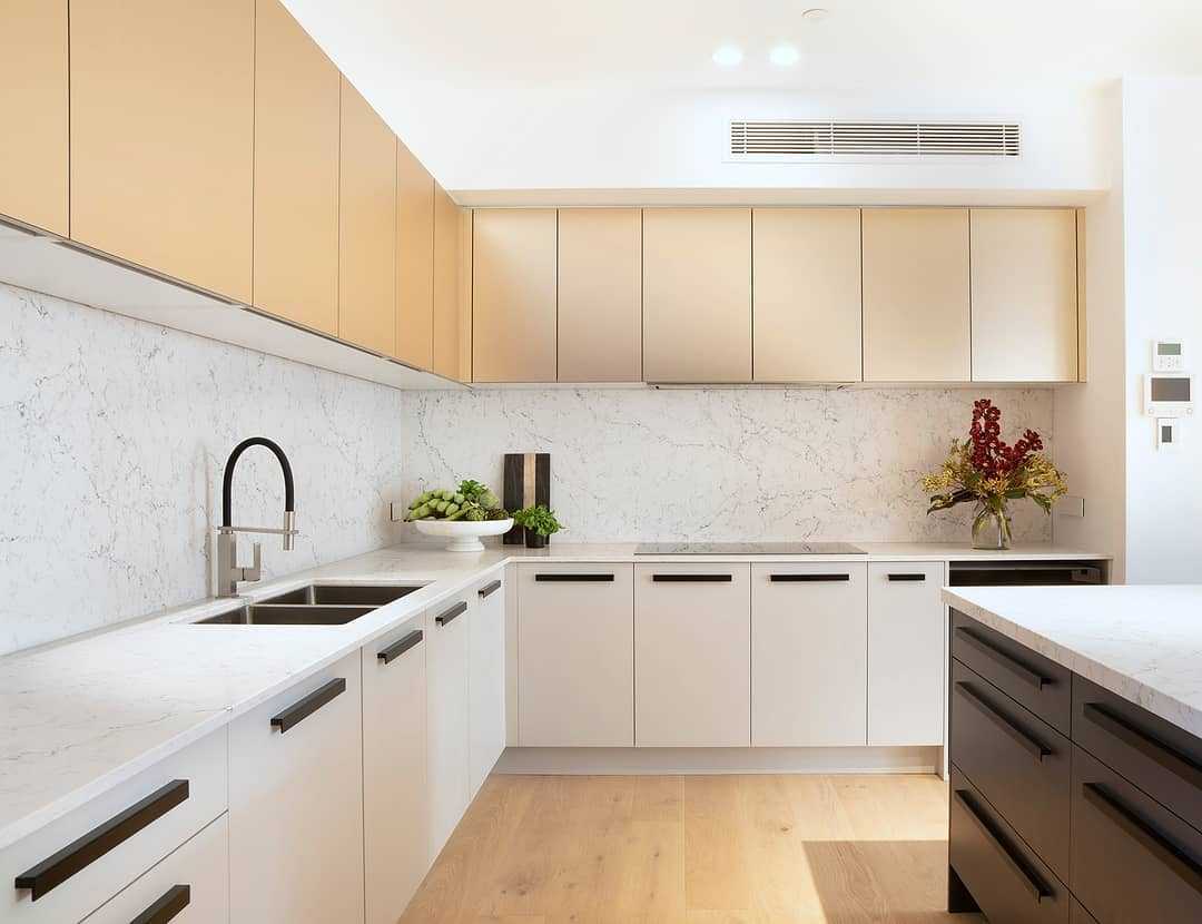 В комнатах скромного размера бывает трудно расположить длинную мебель по прямой. По этой причине в случае необходимости применения многочисленных секций вы столкнетесь с трудностями из-за ограниченной площади для приготовления еды. При таком раскладе рассмотрите идею установки другой разновидности кухонного гарнитура.