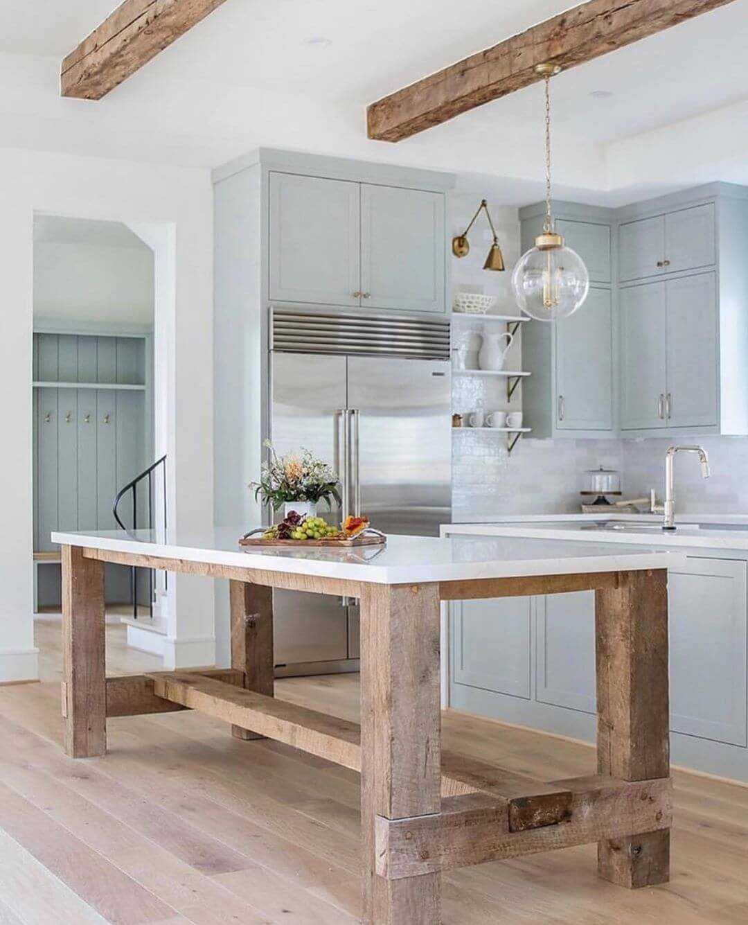 Ассоциируется с уютом деревенского домика. Такие кухни созданы, чтобы украшать собой загородные дома. Материалы только натуральные: дерево, камень, мрамор. Природная фактура выступает главной изюминкой.