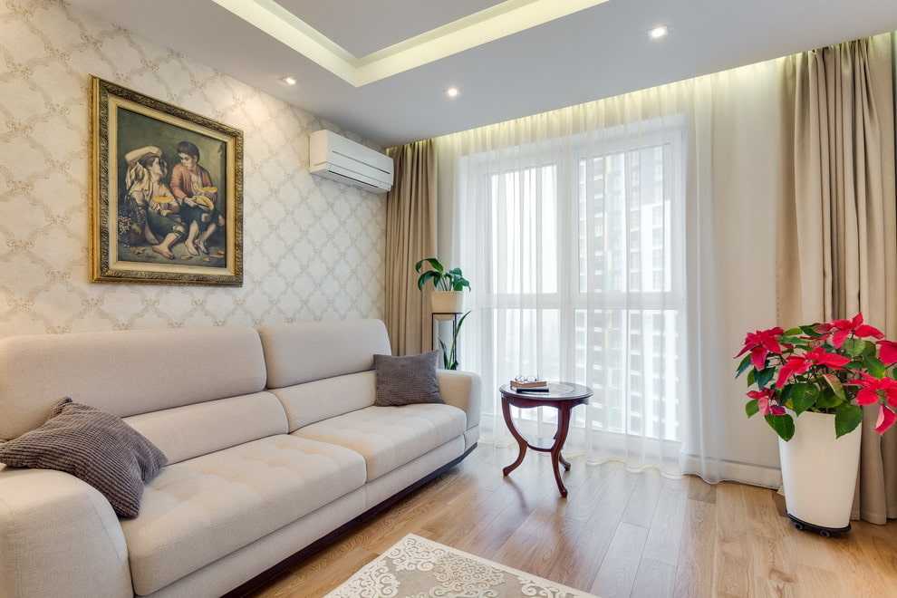 - ограничений, как оформить бежевую гостиную, нет, что позволяет выбирать любое модное направление;