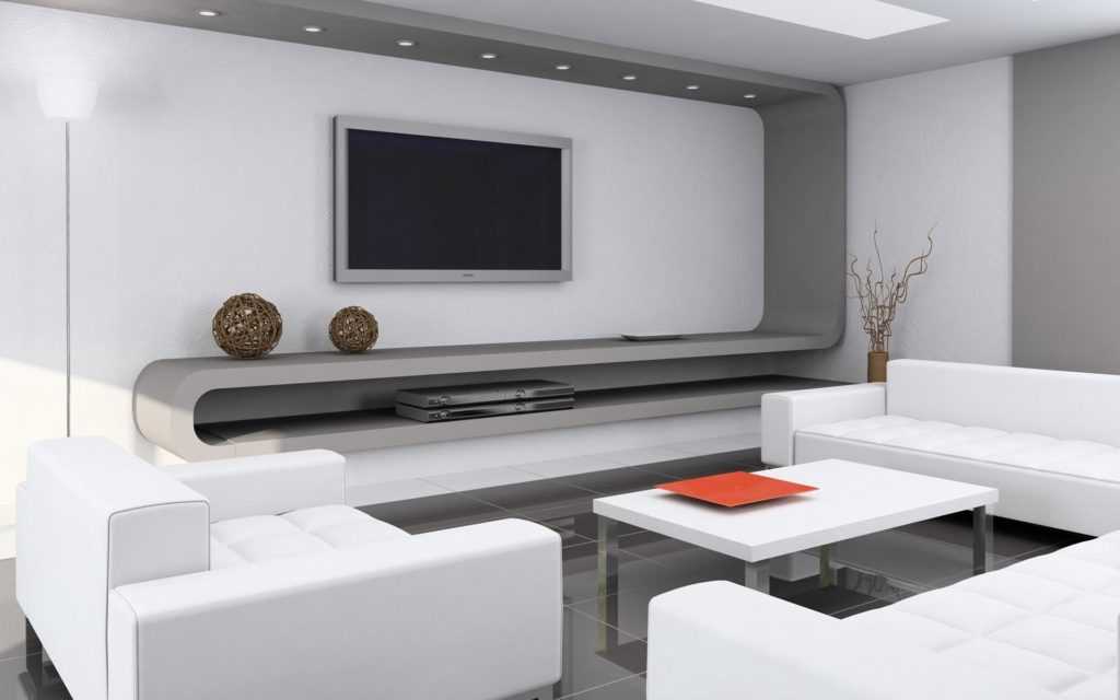 В данном стиле используются современные технологии. При правильном оформлении стены и интерьера – телевизор послужит грандиозным завершением.