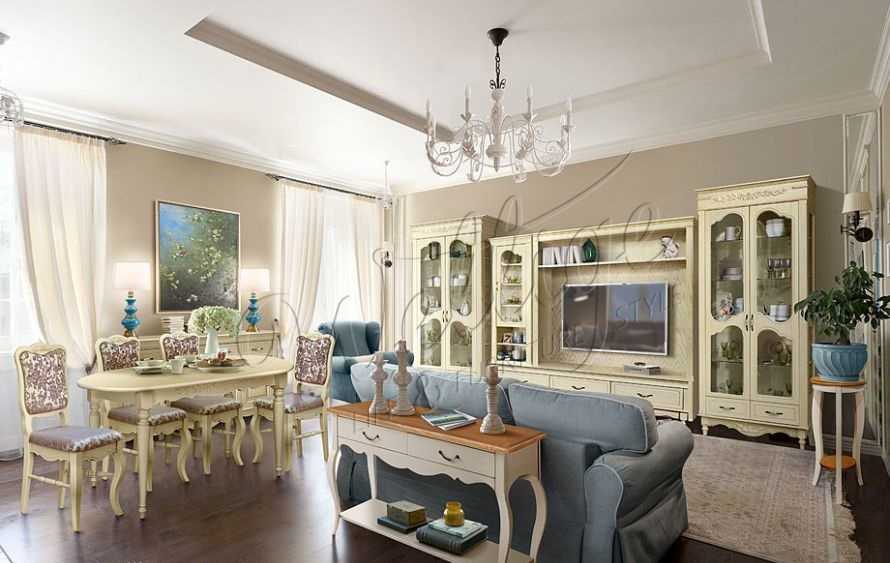 Часть стены, предназначенная для размещения TV, выкрашена в сочный голубой цвет