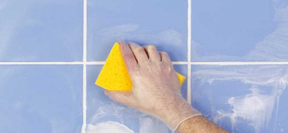 Для работы применяется цементный состав. Малым резиновым шпателем по диагонали накладывают затирочную смесь вровень или чуть выше уровня обрабатываемой поверхности. Идеально, если получится бугорок. Излишки, выступившие на кафель, убирают сразу при помощи влажной губки. Чтобы это было легче сделать, предварительно смачивают поверхность водой, следя, чтобы влага не попала в расстояние между плитками.