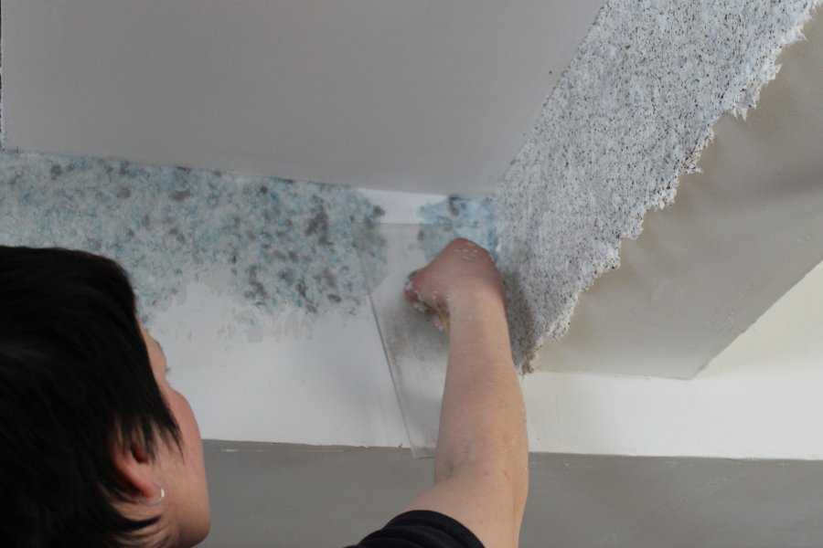 При нанесении механическим способом используется пульверизатор. Тонким слоем смесь наносится на потолок, а после высыхания процедура повторяется для придания густоты.