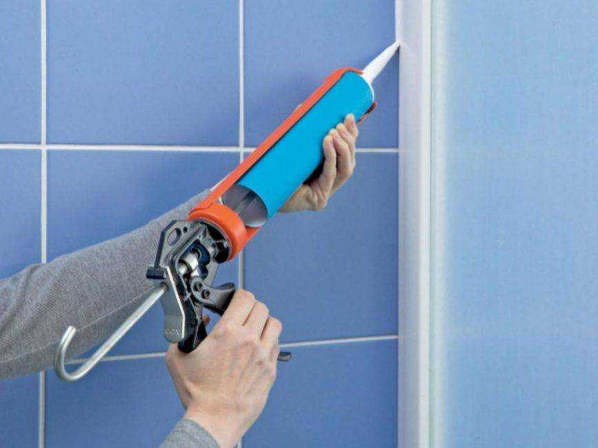 Целью работ является не допустить, чтобы влага попала на бетонное перекрытие, так как оно под длительным воздействием воды может разрушиться. С этим справляется герметик для душевой кабины, который может быть: акриловым и силиконовым.