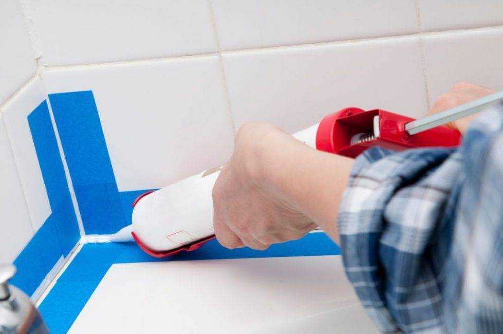 Чтобы герметизирующий шов был ровным, на стены и бортики ванной клеят малярный скотч